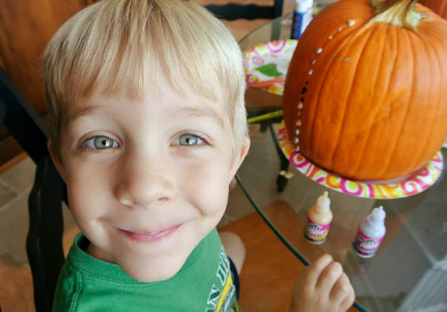 But maybe you don't want your littles playing with knives? No worries. Have them paint their pumpkin instead. In fact, you can pick the smaller "pumpkin pie" pumpkins especially for this purpose. After all, what kid doesn't love getting their hands good and dirty with paint?